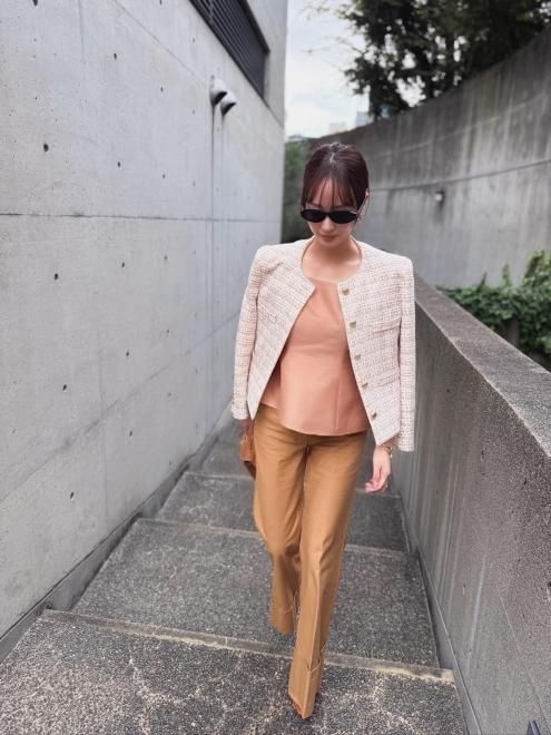 bishu tweed jacketの美シルエットはそのまま、肩パッドが施されアップデートしました。