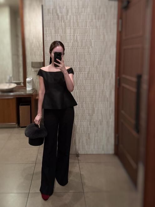 絶妙にスタイルよく魅せてくれるシルエット、センタープレスのトラウザーパンツ。