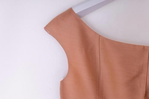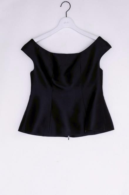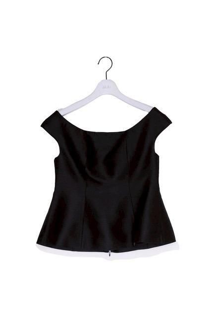 肩を包み込むようなオフショルダーのラインと、ウエストに向かって優美に広がるペプラムフォルムが、女性の身体を美しく魅せてくれます。
