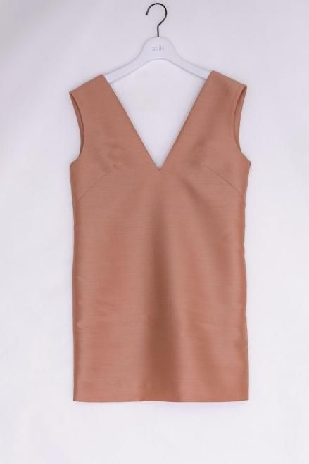 上質なシルクウールを使用した、構築的なフォルムのドレス。