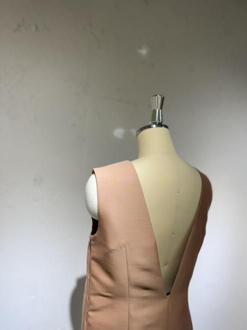 素材の重みと光沢が、纏う人の存在を際立たせるドレスです。