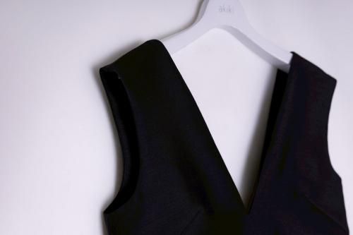 素材の重みと光沢が、纏う人の存在を際立たせるドレスです。